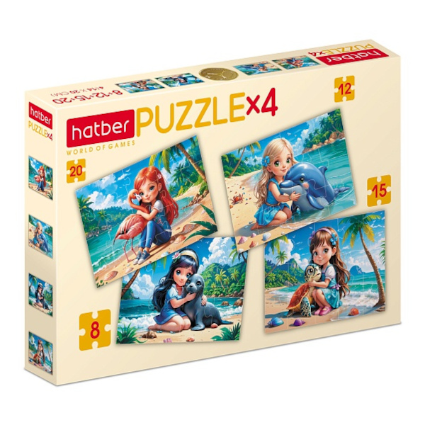 Пазлы 8, 12, 15, 20 элем. дет. "4 в 1. Тропические друзья" А5 200*140мм ПЗ5_34766 Hatber