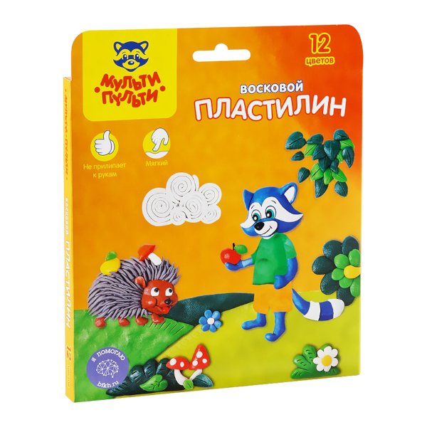 Пластилин Мульти-Пульти "Енот в лесу" 12цв, 180г, восковой, со стеком ВП_11058
