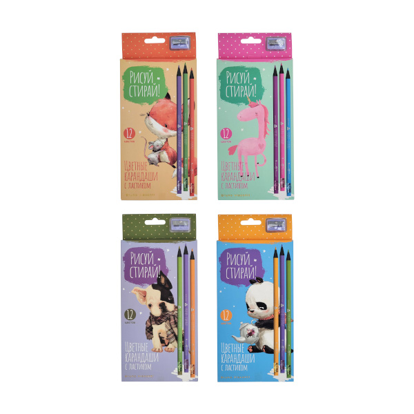 Карандаши 12цв, пластик, 3-гран. "Рисуй и стирай" ластик, точилка, ассорти 30-0120 Bruno Visconti