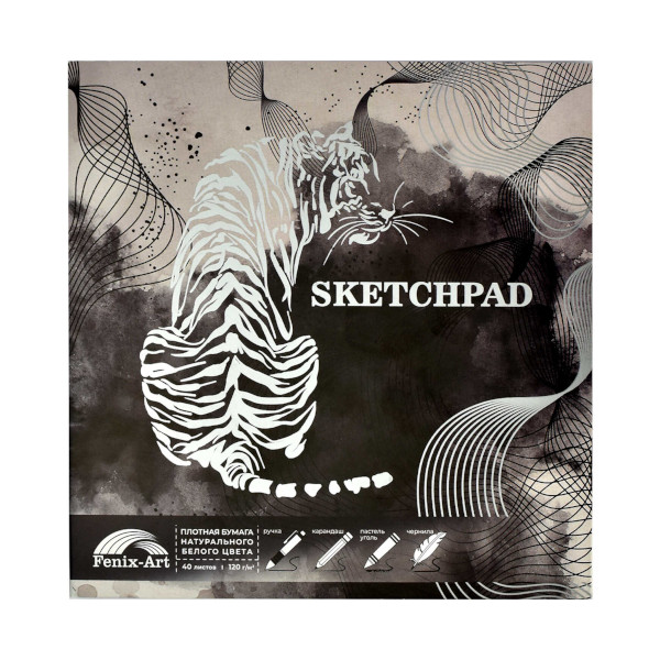 Скетчпад для графики и письма 170*170мм 40л, 120г/м2, склейка "Тигр" 61206 Fenix-Art