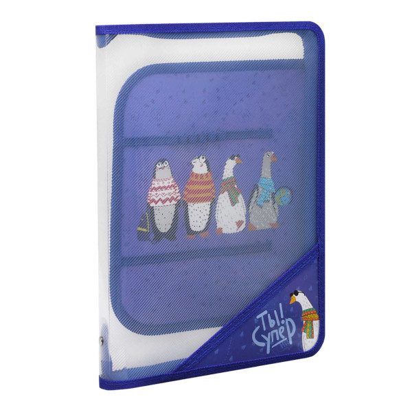 Папка для труда А4 1отд., пластик, молния "Пингвины и гуси" 69284 Феникс+