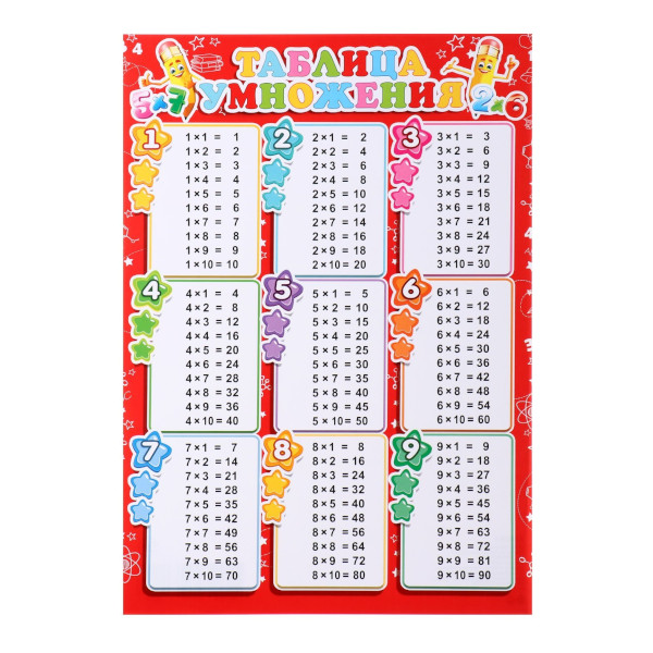 Плакат обучающий "Таблица умножения" А4 9331720 Мир открыток