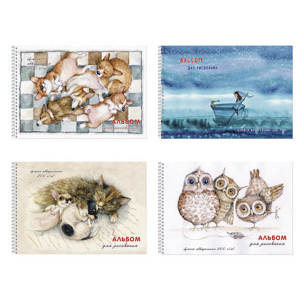 Альбом для рис акварелью 20л А4 "Спящие дружочки" 200г/м2, гребень 2914 Полином
