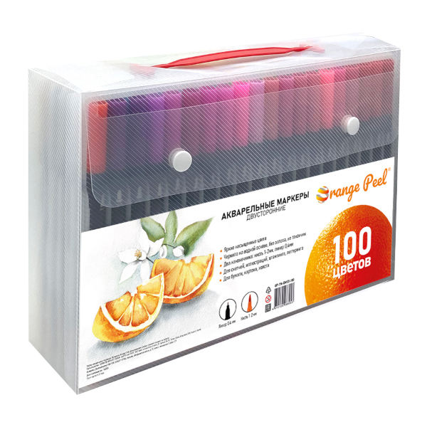Набор маркеров акварельных Shepherd "Orange Peel" 100цв., двустор., кисть/линер OP-TM-BM131-100
