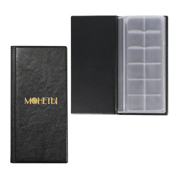 Альбом для монет 72 монеты, 105*223мм, черный 2858-207 ДПС