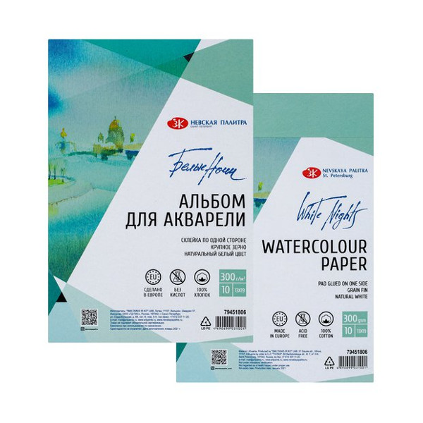 Альбом для акварели 10л 13*19мм "Белые Ночи" 300г/м2, склейка, крупное зерно 79451806 НевскаяПалитра