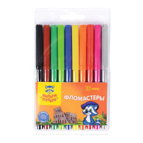 Фломастеры Мульти-Пульти "Енот в Италии" 10цв, смыв., пласт.уп. WP_10724
