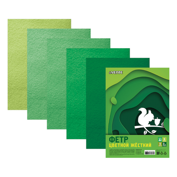 Набор фетра декоративного "Оттенки зеленого" А4, 5л, 5цв, 1,5мм 8113204 deVENTE