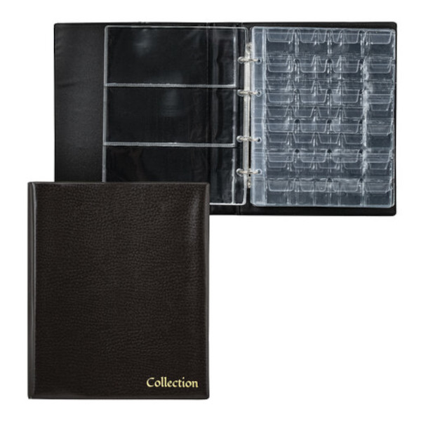 Альбом для монет и купюр, 230*270мм, 6 купюр/297 монет, кольца, ПВХ, корич. "Optima" 238077 Staff