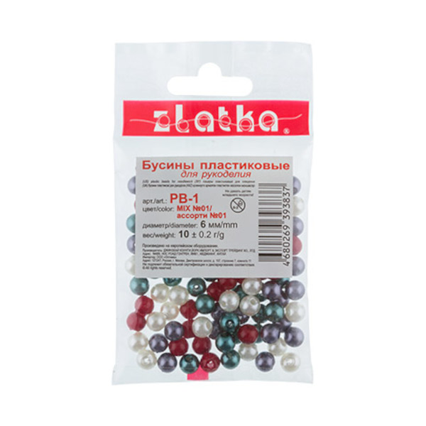 Бусины "Zlatka" MIX пластик PB-1 6мм 10 г ± 0.2 г №01 ассорти