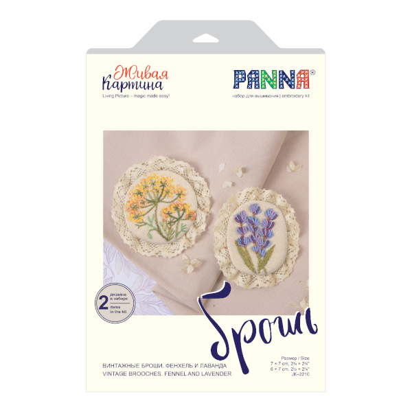 Набор для вышивания PANNA "Живая картина. Винтажные броши. Фенхель и Лаванда" (2шт) JK-2210