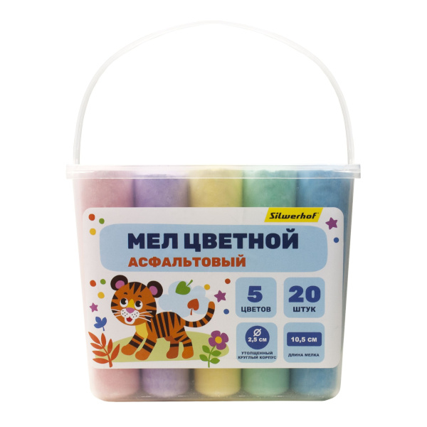 Мел цветной 5цв/20шт асфальтовый "Веселые друзья" круглый, пласт.ведро 1868780 Silwerhof