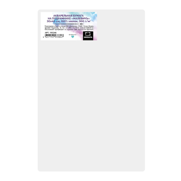 Холст акварельный на подрамнике 30*40см, 300г/м2, экстра-мелкое зерно, хлопок 195246 Малевичъ