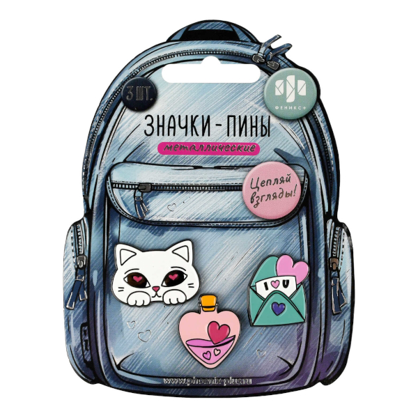 Значки-пины "Валентинки" 21*25/21*29мм, металл, 3шт 71127 Феникс+