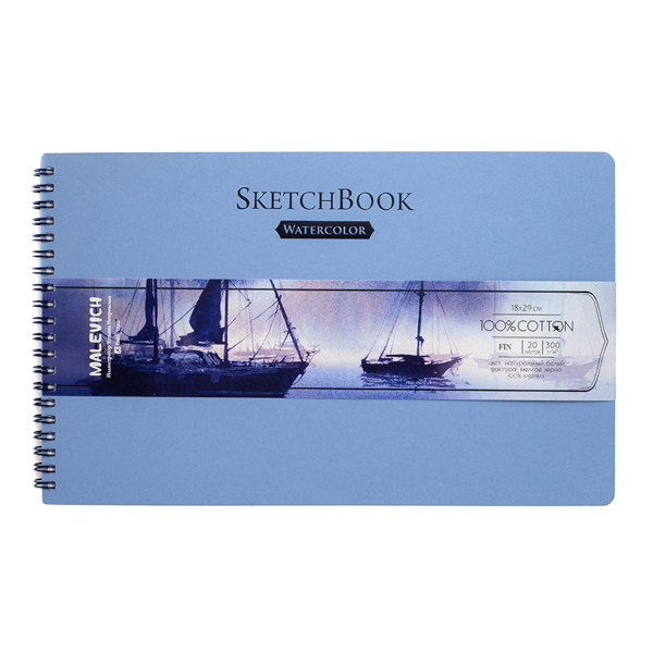Скетчбук для акварели 180*290мм 20л, 300г/м2, гребень 401485 Малевичъ