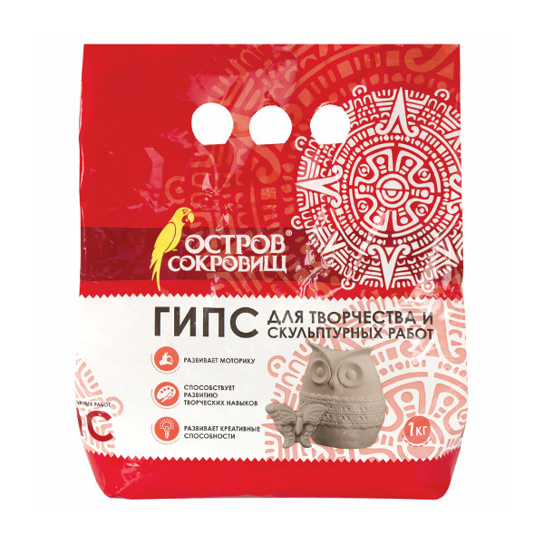 Гипс для скульптурных работ ОСТРОВ СОКРОВИЩ 1000г, серый, пакет 661546