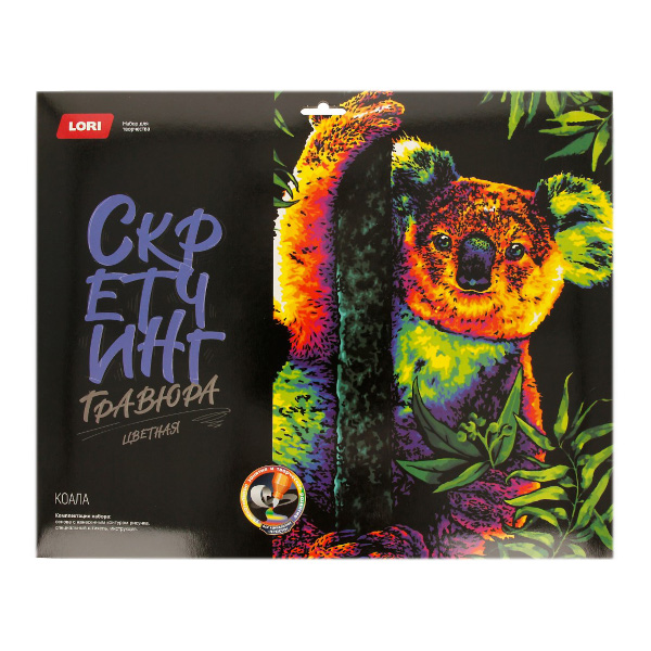 Набор для творчества Lori "Скретчинг. Неоновые животные. Коала" гравюра 30*40см, карт.уп Гр-781