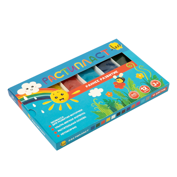 Пластилин Лео "РАСТИпласт" 12цв, 240г, растительный, картон. уп. LRP-0112