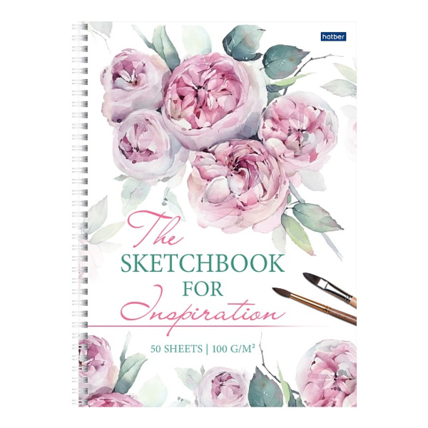 Скетчбук для графики и письма А4 50л, 100г/м2, гребень "Акварельный букет" 50Тт4Aгр_22204 Hatber
