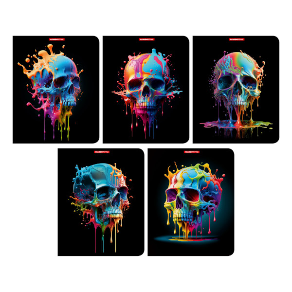 Тетрадь 48л А5 клетка "Яркие черепа" картон, ассорти 14678/5 Academy style