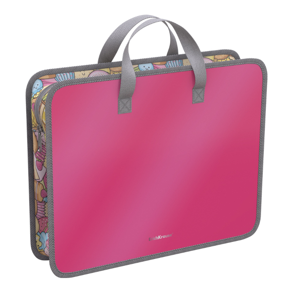 Папка с ручками А4+ 1отд., пластик, молния, арома "Glossy Bubble Gum. Розовый" 54999 Erich Krause