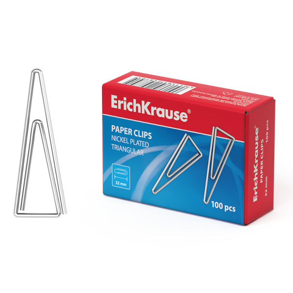 Скрепки 32мм Erich Krause треугольные, никелированные, в карт.уп. (100шт) ЕК24870