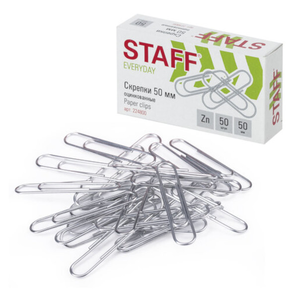 Скрепки 50мм Staff "Everyday" овальные, оцинкованные, в карт.уп. (50шт) 224800