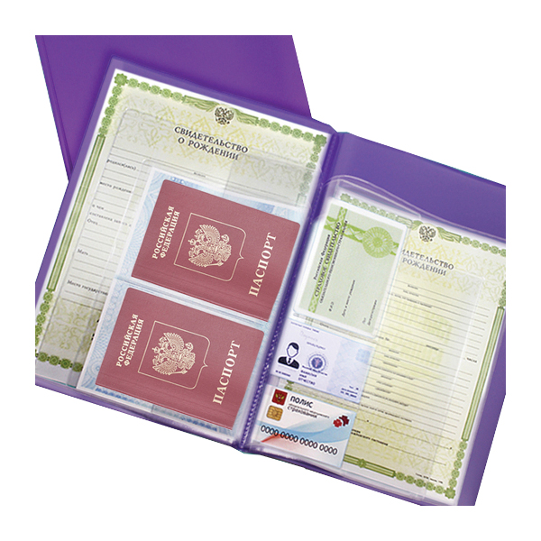 Папка с файлами для документов с файлом для паспортов, ПВХ, фиолетовая 2137.П-110 ДПС