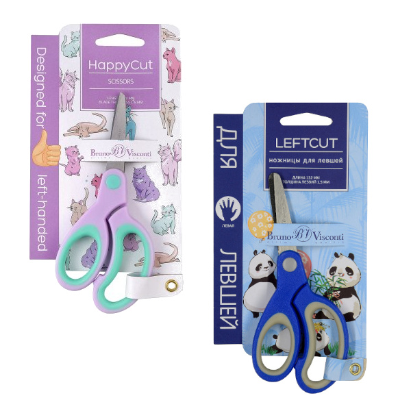 Ножницы для левшей 13,2см Bruno Visconti "LeftCut" асимметр., прорез., ассорти 60-0034
