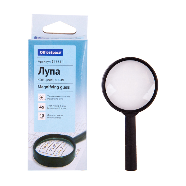 Лупа OfficeSpace 40мм 4-х кратная, пластик. оправа 178894