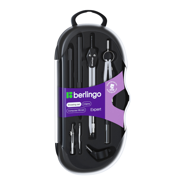 Готовальня Berlingo "Expert" 8 предм., метал. циркуль 135мм, пласт. футляр, черный 231680