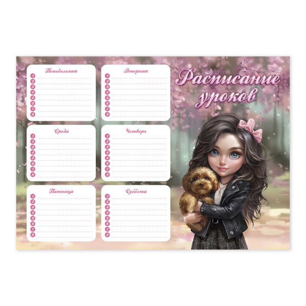Расписание уроков А4 "Брюнетка с собачкой" картон 68852 Феникс+