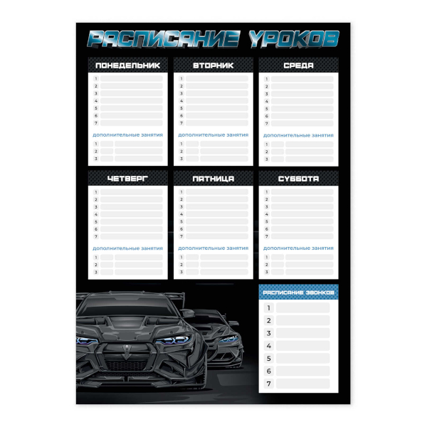 Расписание уроков А3 "Тачка" картон 68848 Феникс+