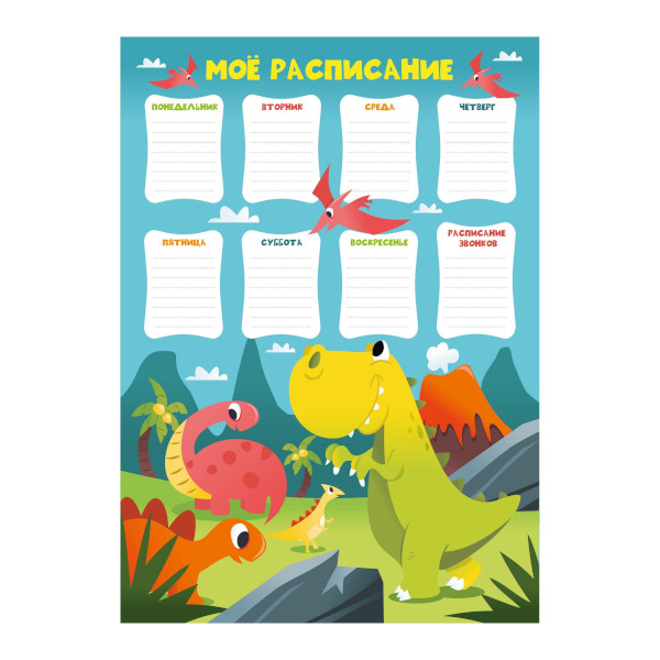Расписание уроков А3 "Динолэнд" мел. картон РЛ30017 Listoff
