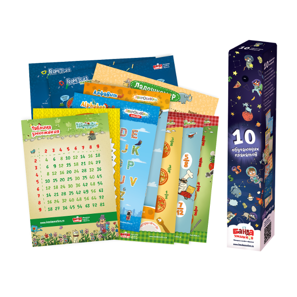Набор плакатов обучающих, 10 плакатов из бумаги, 34*50см, в карт. уп. Банда умников УМ049