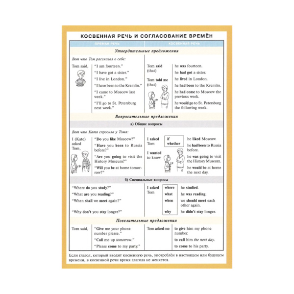 Справочный материал "Косвенная речь и согласование времен (англ. язык)" 140*200мм 23617 Айрис-Пресс