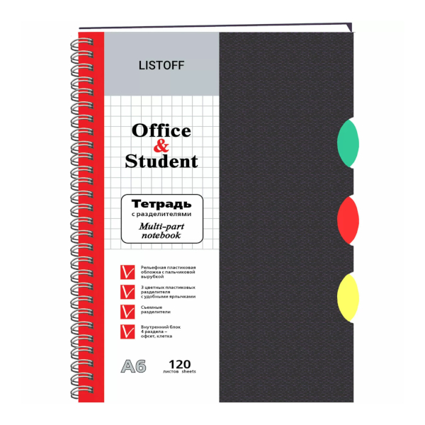 Тетрадь 120л А6 клетка/гребень "Черная" пластик, раздел. ТПР612041 Listoff