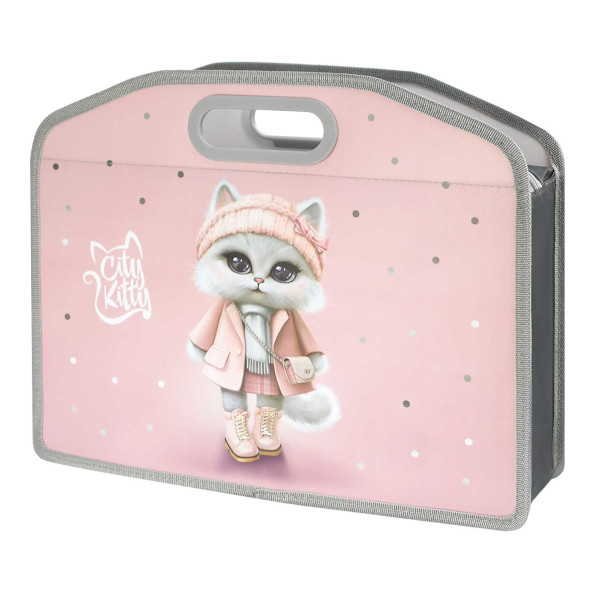 Папка с ручками А4 1отд., пластик, молния "Кошечка в пальто" 69281 Феникс+