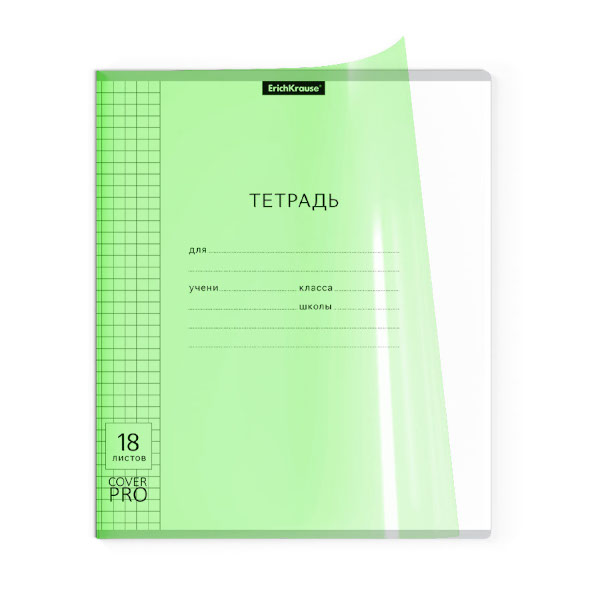 Тетрадь 18л А5+ клетка "Классика CoverPrо Neon" пластик, зеленый 56366 Erich Krause