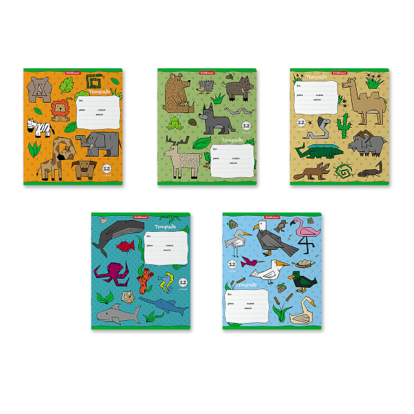 Тетрадь 12л А5+ клетка "Animal World" картон, ассорти 58243 Erich Krause