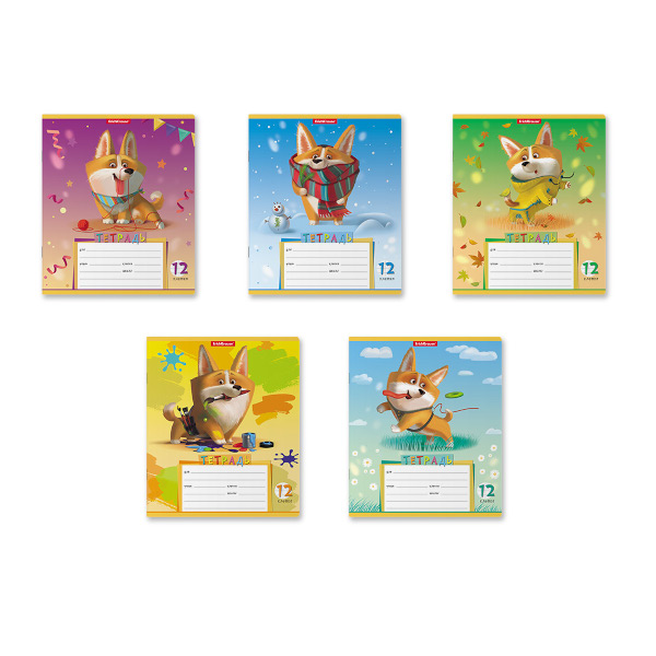 Тетрадь 12л А5+ клетка "Корги" картон, ассорти 51407 Erich Krause