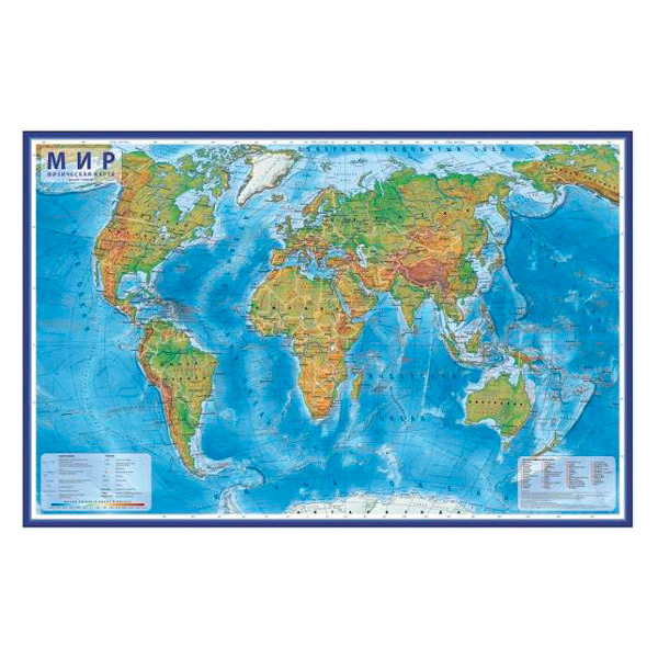 Карта настенная Globen Мир физический 1200*780мм, 1:25 000 000 ламинация, интератив., тубус КН049