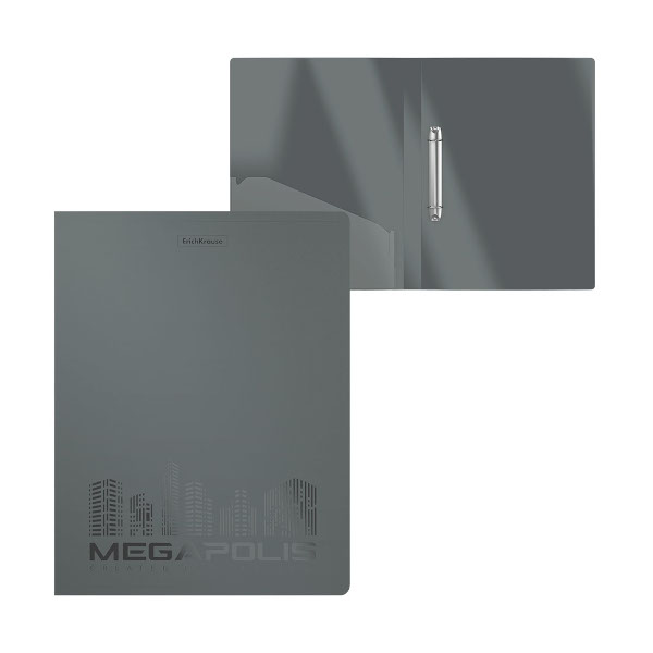 Папка 2 кольца А4, 24мм, 600мкм, карман внутрен., серая "Megapolis" 49980 Erich Krause