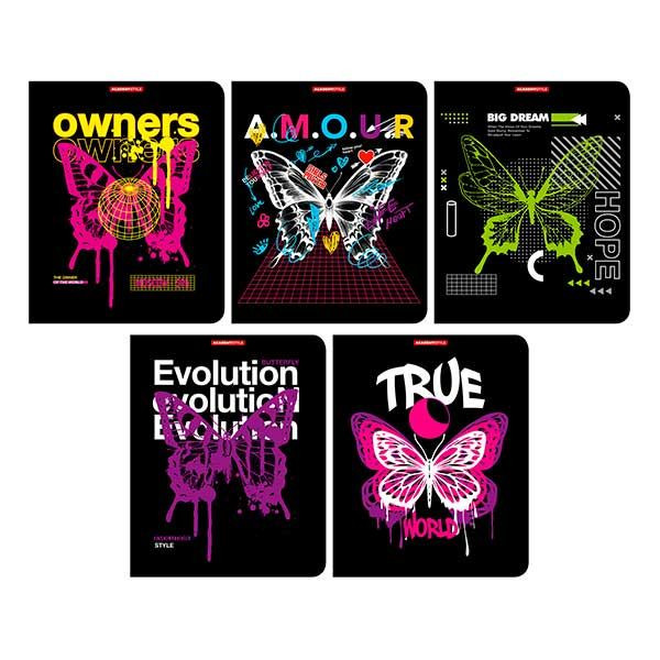 Тетрадь 48л А5 клетка "Яркие бабочки" картон, ассорти 14118/5 Academy style