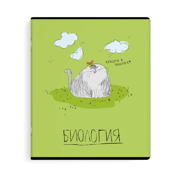 Тетрадь предметная 48л А5+ Биология "Любознательные коты" клетка, картон 60463 Феникс+