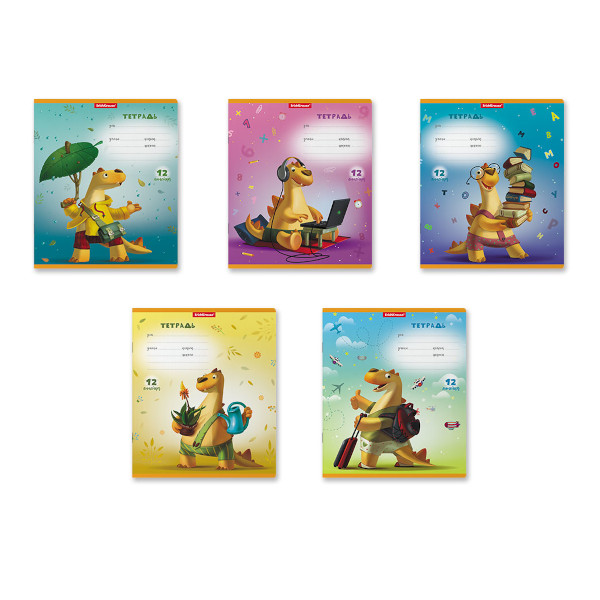 Тетрадь 12л А5+ линейка "Динозаврик" картон, ассорти 54188 Erich Krause