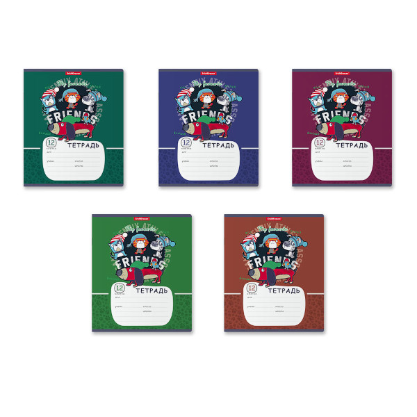 Тетрадь 12л А5+ клетка "Adventure Friends" картон, ассорти 58384 Erich Krause