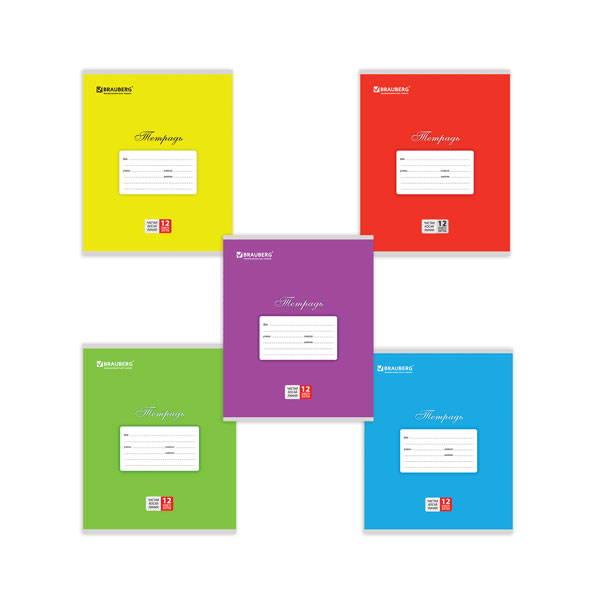 Тетрадь 12л А5+ линейка косая частая "Классика" картон, ассорти 103278 Brauberg