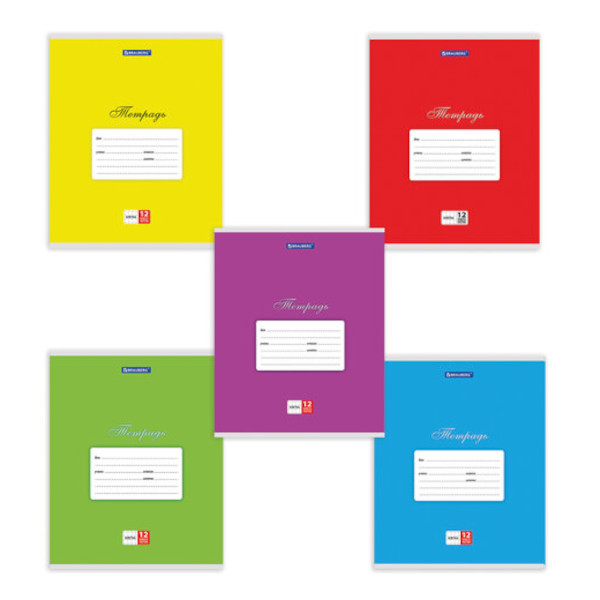 Тетрадь 12л А5+ клетка "Классика" картон, ассорти 103273 Brauberg