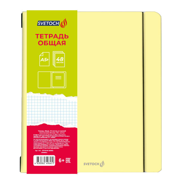 Тетрадь 48л А5+ клетка "Ваниль 000822" съем. пластик, желтый ТЕТ48-001 SVETOCH
